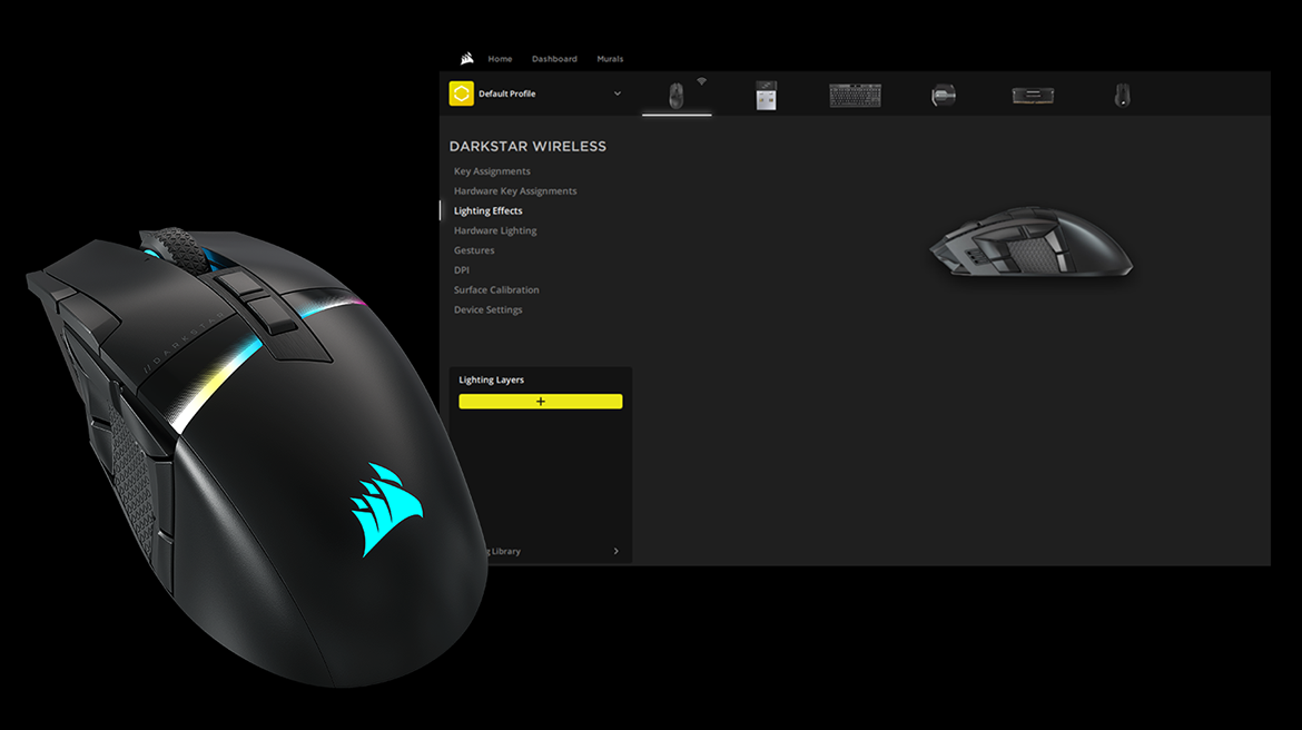High-level players need to program their mouse to their exact specifications, and players of any skill level want to program DARKSTAR’s amazing RGB. That’s where powerful CORSAIR iCUE software comes in. With the newly redesigned iCUE 5.0, you can personalize your mouse’s RGB lighting effects, set DPI, assign macros, surface calibrate the sensor, and more. Save your settings to five onboard profiles, for convenient access no matter where you’re playing.